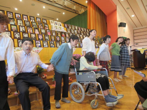 10月13日は召天者記念礼拝運動会と、職員の松本さん、入園している仲間のお母さま、職員の義母の納骨式を行いました。3人の方を加えて100名の方が納骨堂に入られることになります。